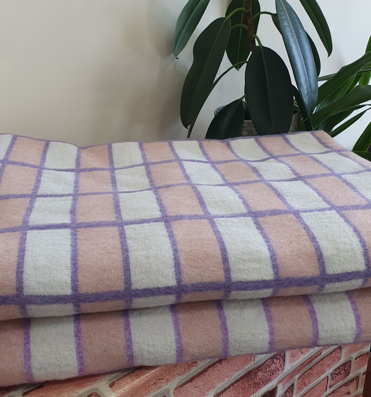 Одеяло байковое 140*205 - 80% хлопка бело-розово-сиреневая клетка