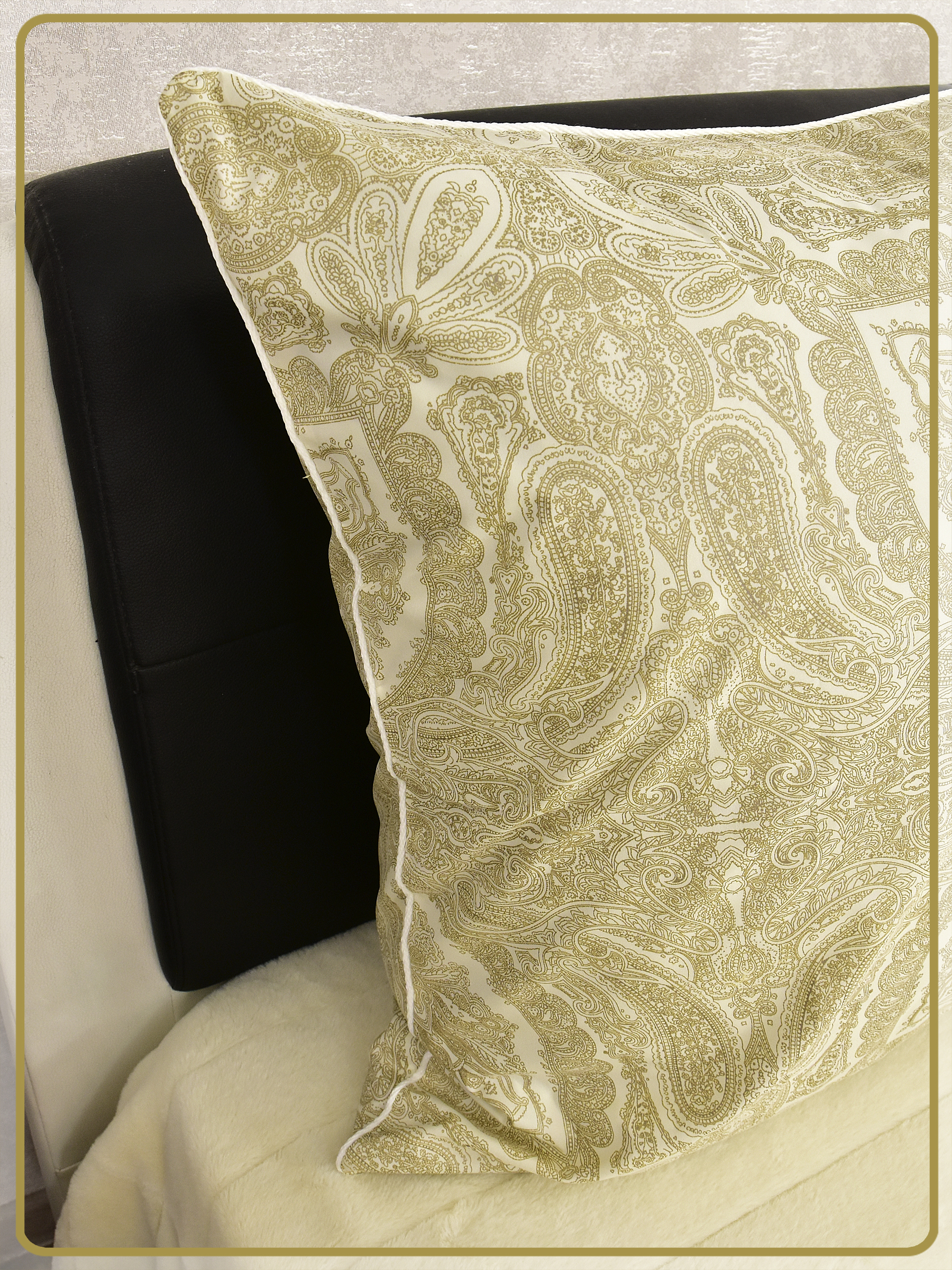 Наперник из тика пуходержащего 70х70 - На молнии Вензель бежевый с кантом
