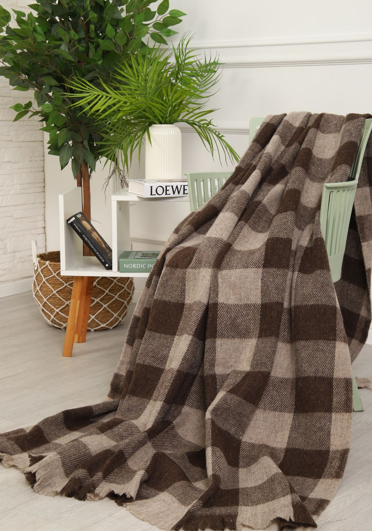 Плед шерстяной 50% 4001 - 50*2 10 Клетка шоколад)