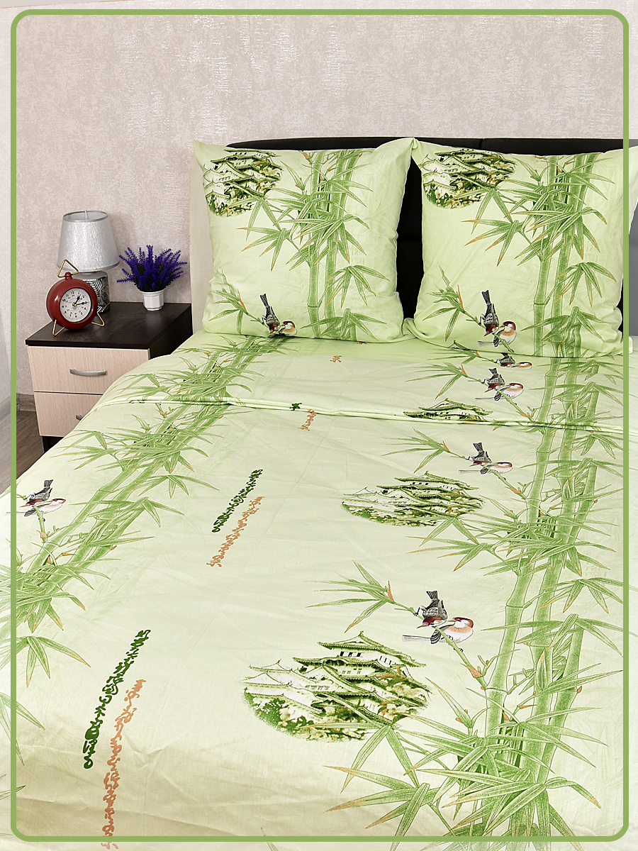 Постельное белье из Шуйской бязи 1,5 спальное - Птичка на бамбуке 8147-1