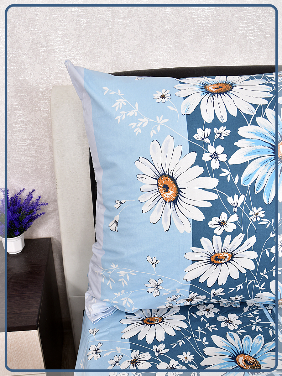 Постельное белье из Шуйской бязи 1,5 спальное - Лазурные ромашки 21661-1
