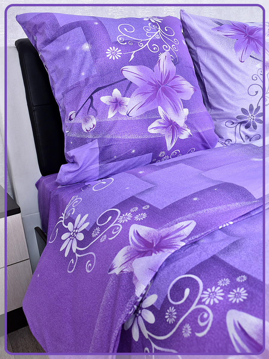 Постельное белье из Шуйской бязи 1,5 спальное - Лилия фиолетовый 8578-1