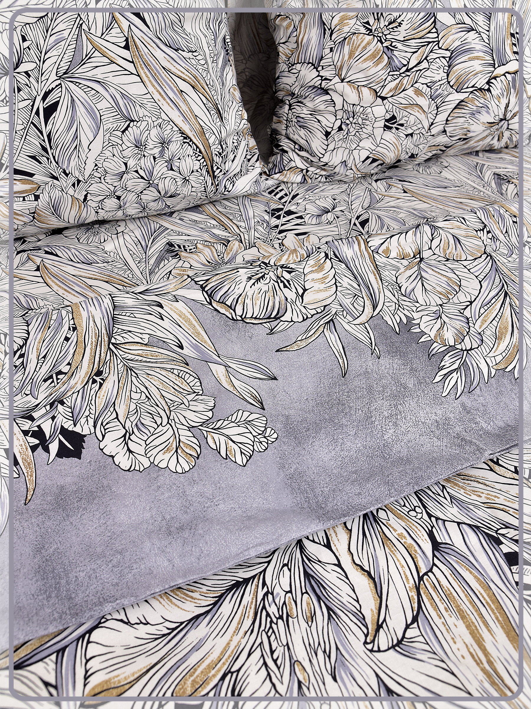 Постельное белье из Шуйской бязи 2 спальное с евро простыней - Загадочный сад 21919-1