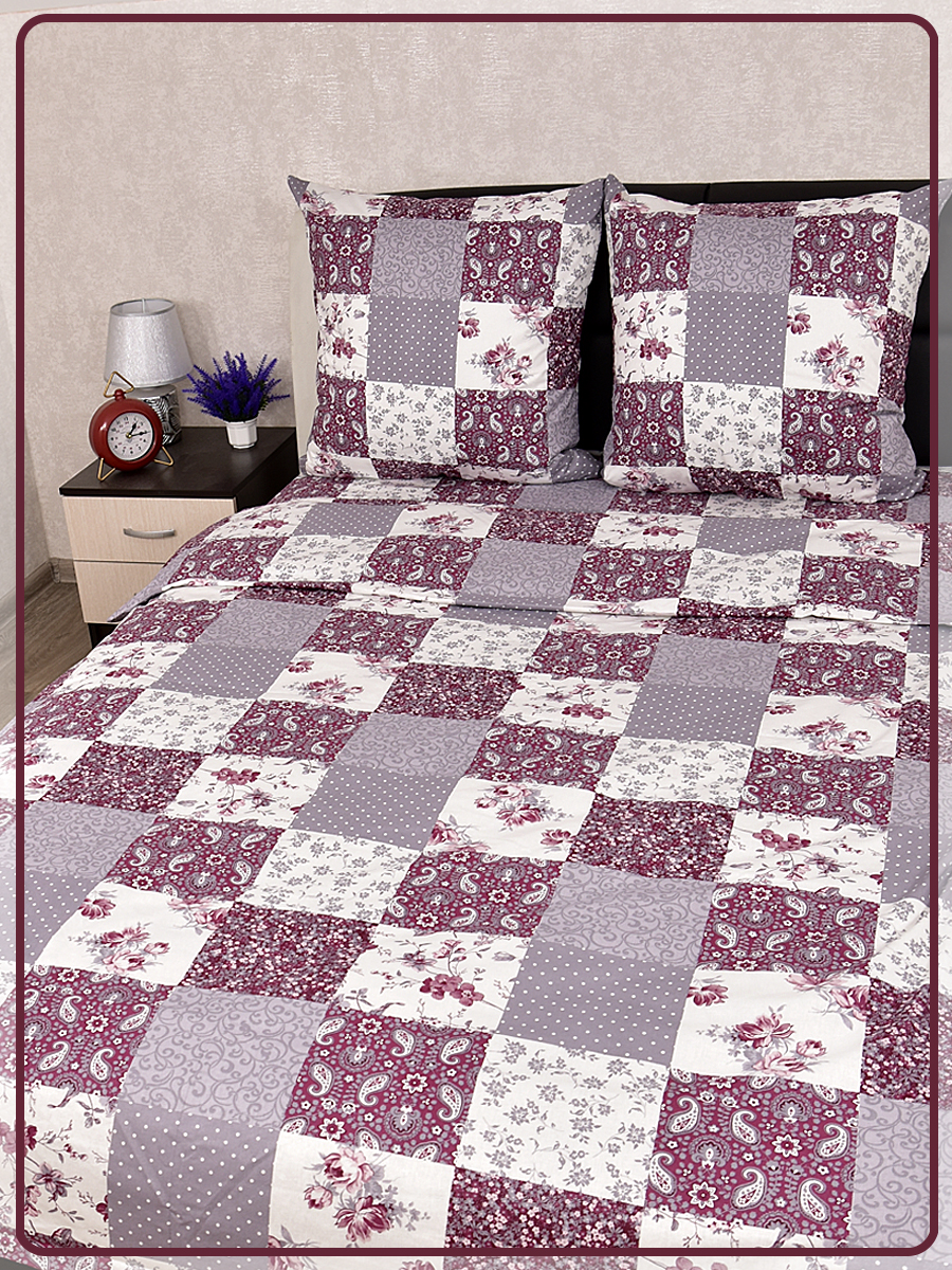 Постельное белье из Шуйской бязи 1,5 спальное - Пэчворк бордовый 9909-1