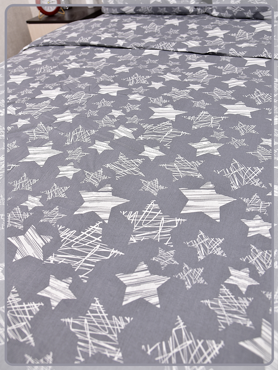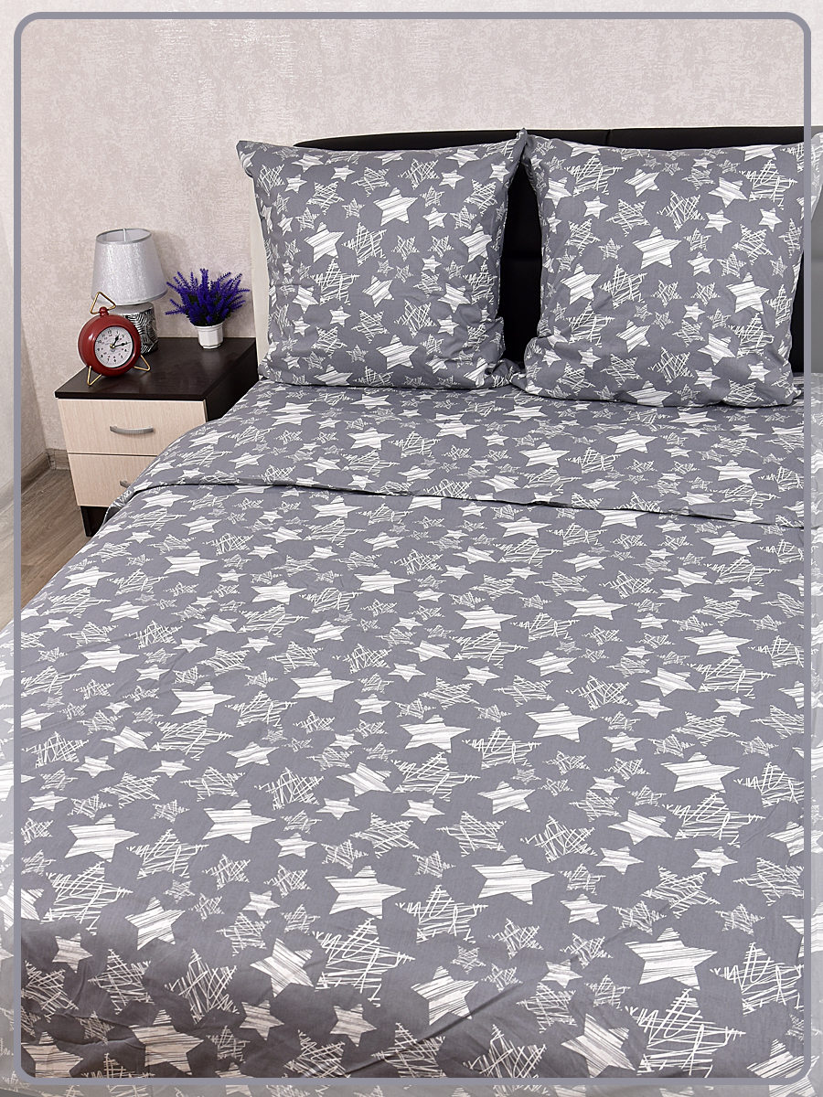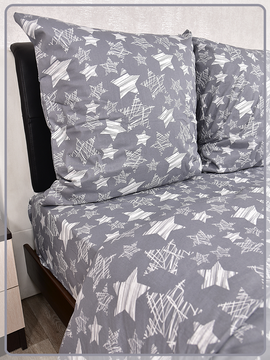 Постельное белье из Шуйской бязи 2 спальное - Звезды на сером 9050-1