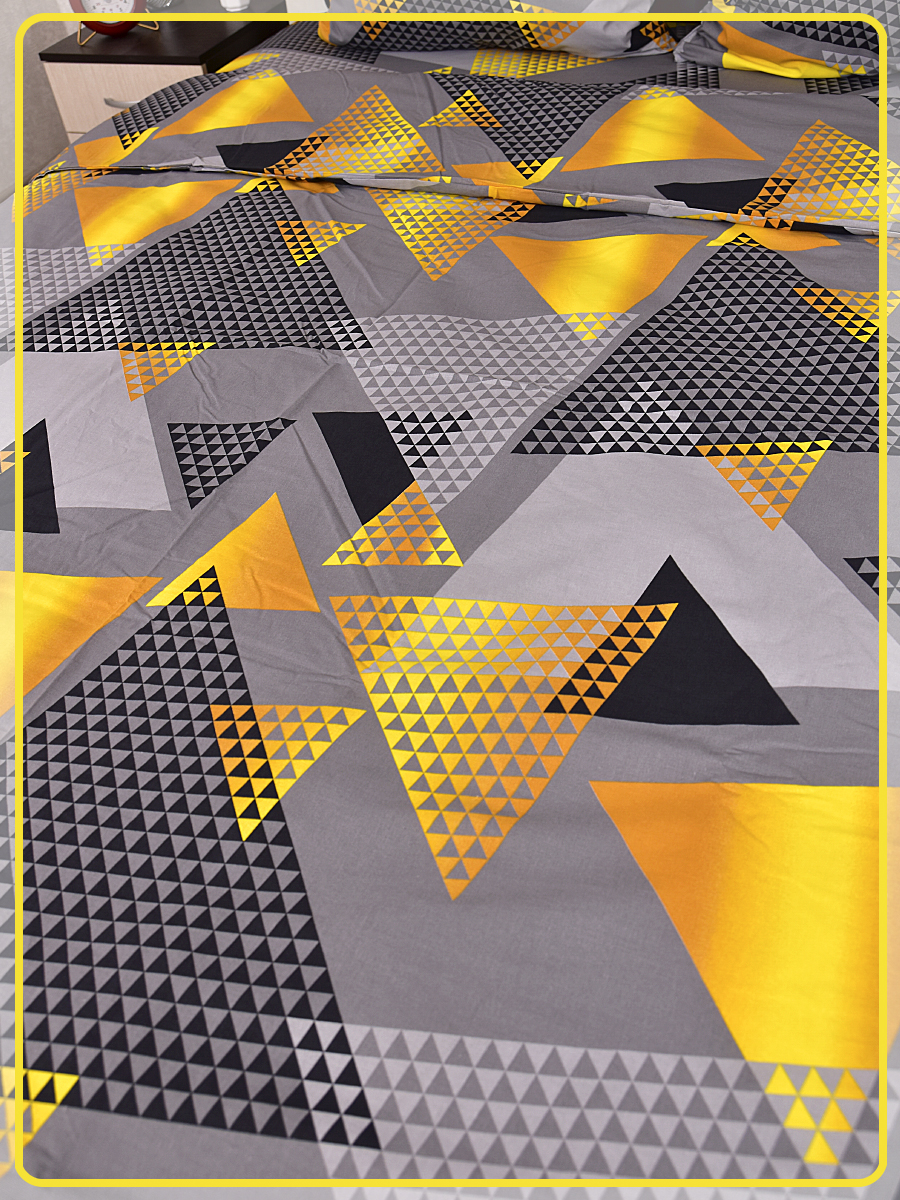 Постельное белье из Шуйской бязи 2 спальное с евро простыней - Треугольник желтый 20804-1