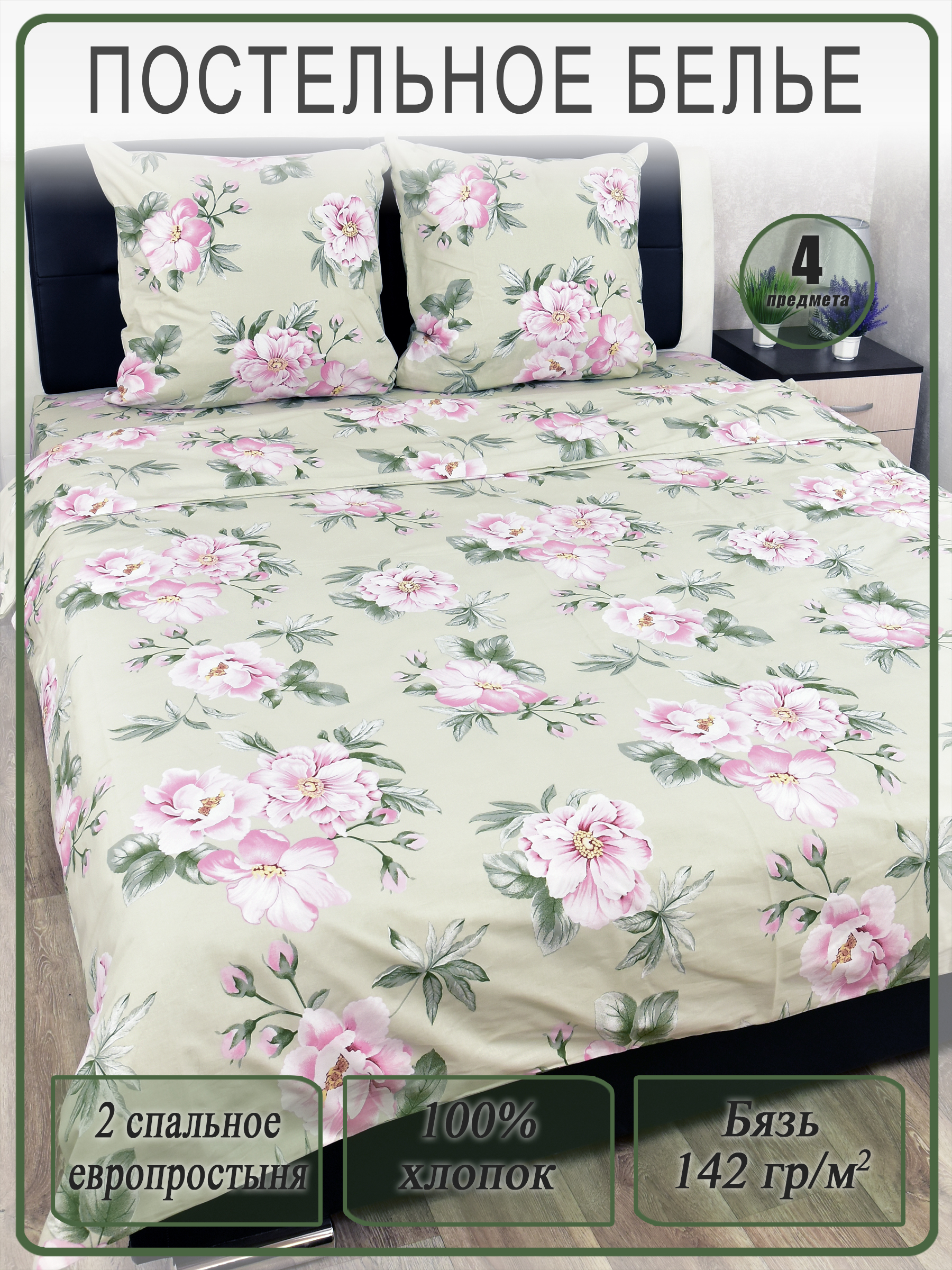 Постельное белье из Шуйской бязи 2 спальное б/ш - Шиповник 7418-1