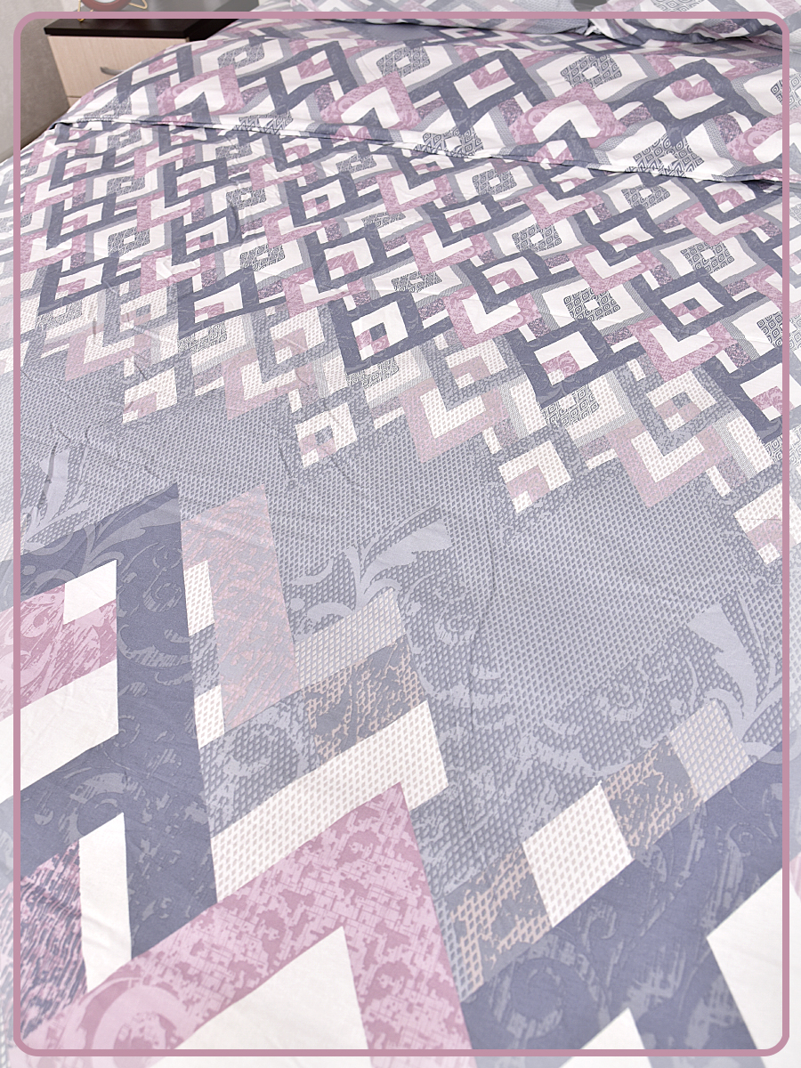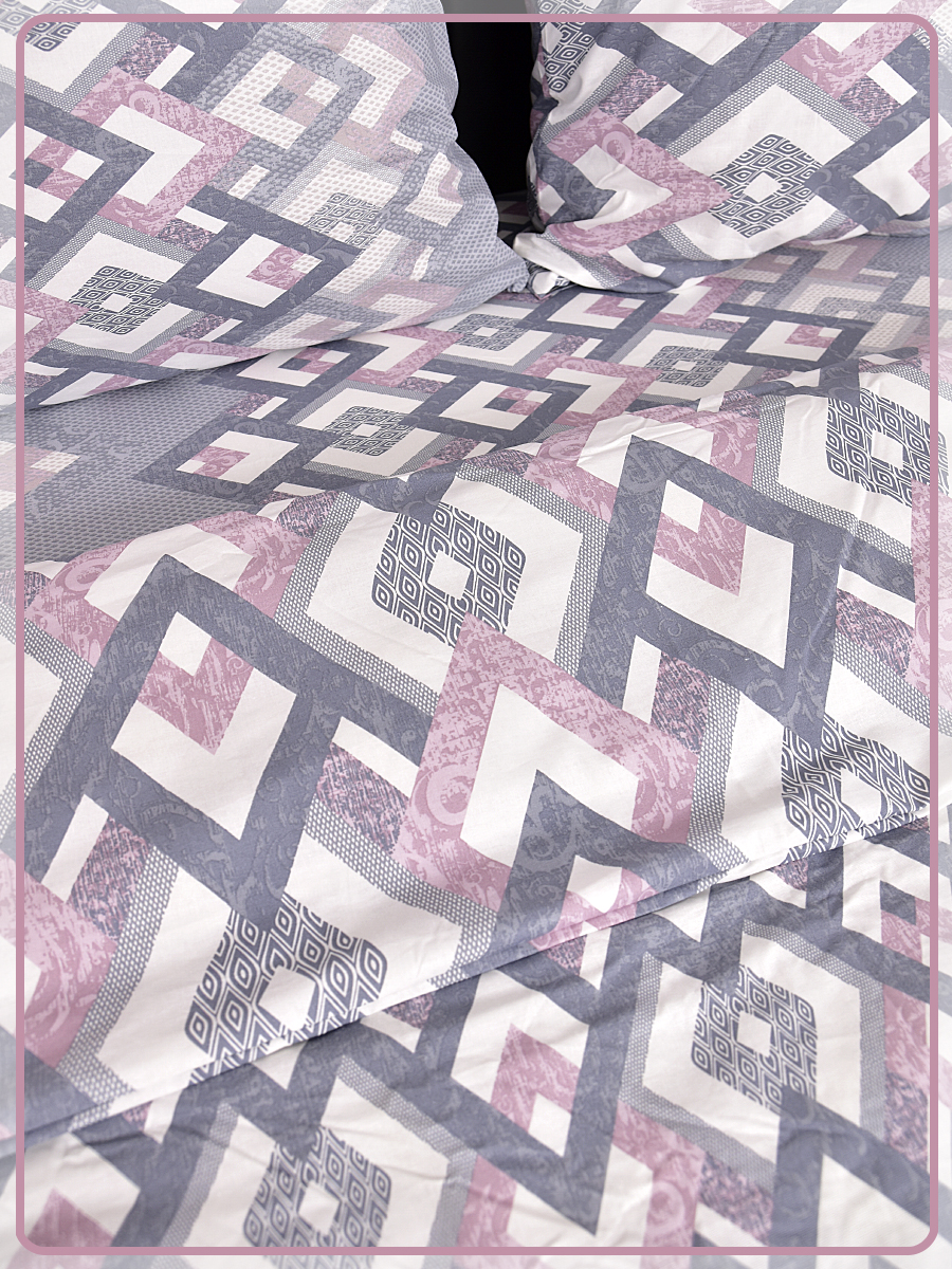Постельное белье из Шуйской бязи 2 спальное б/ш - Ромб серо-розовый 21579-1