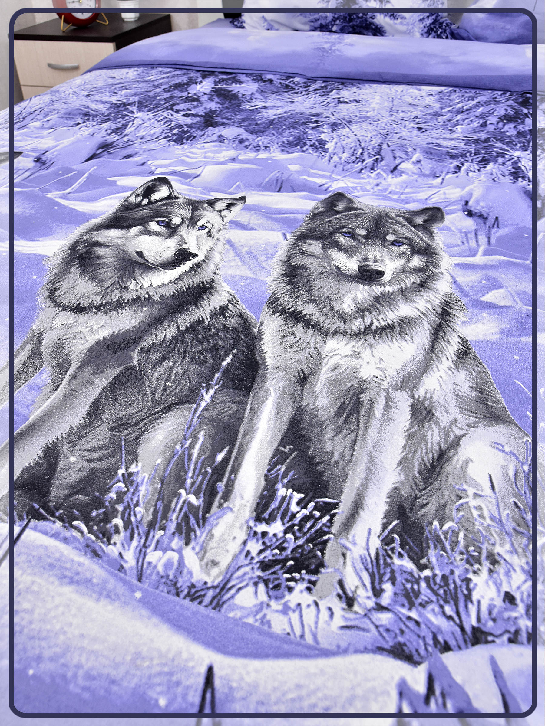 Постельное белье из Шуйской бязи 2 спальное с евро простыней - Волк 22087-1