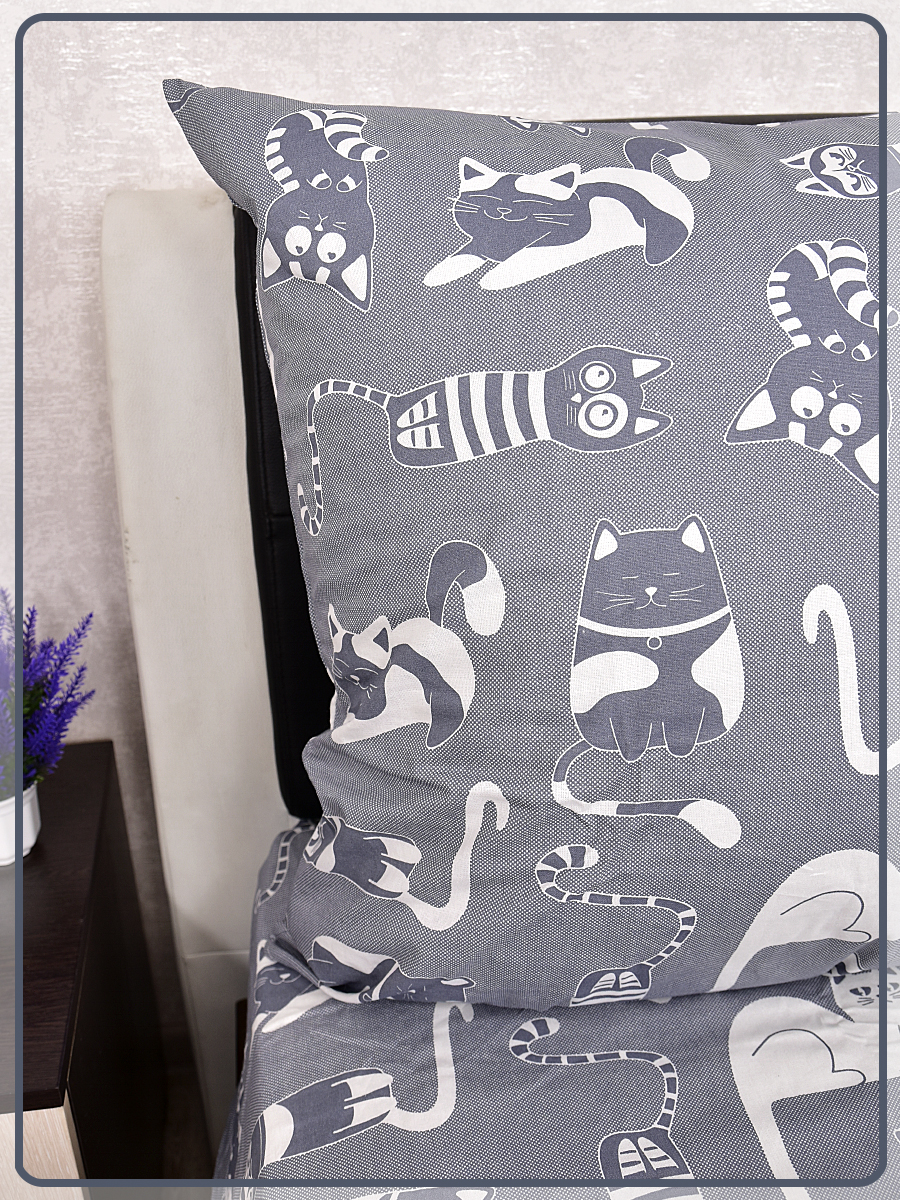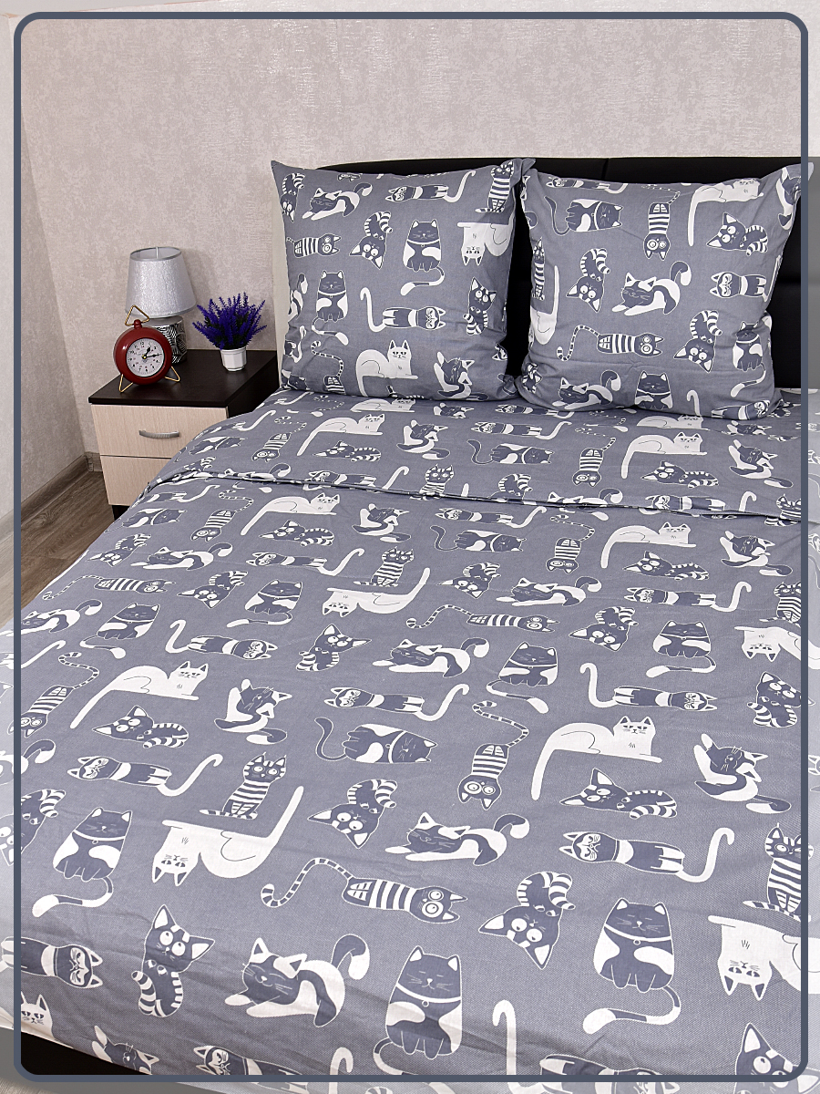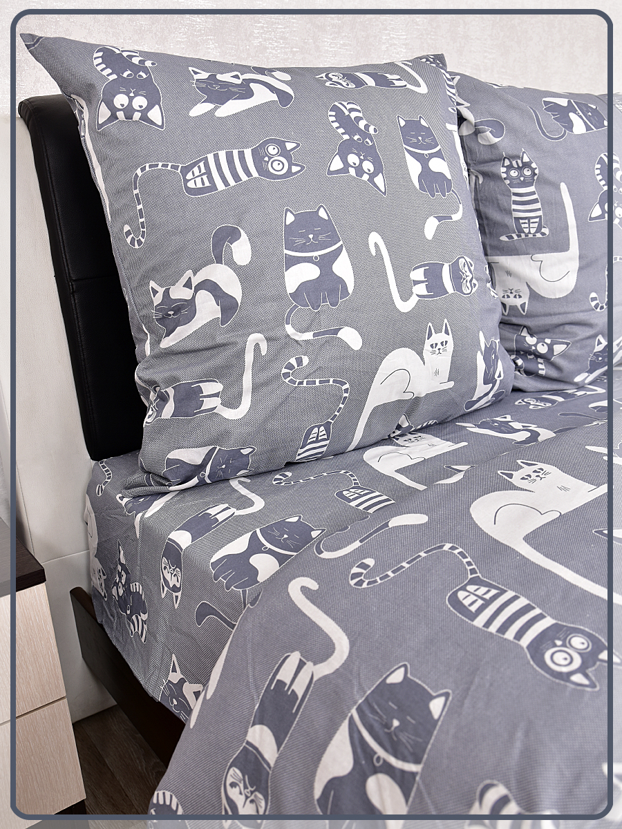 Постельное белье из бязи 1,5 спальное - Кошкин дом вид 9/16 темно-серый