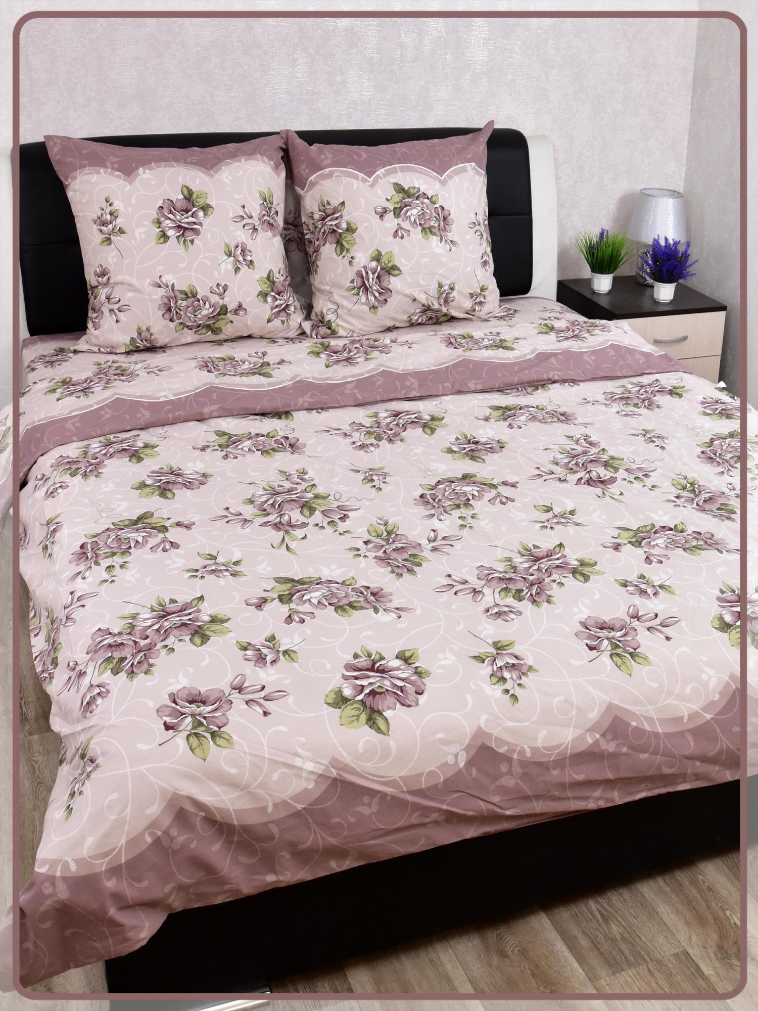 Постельное белье из Шуйской бязи 2 спальное с евро простыней - Букетики коричневые 20523-1