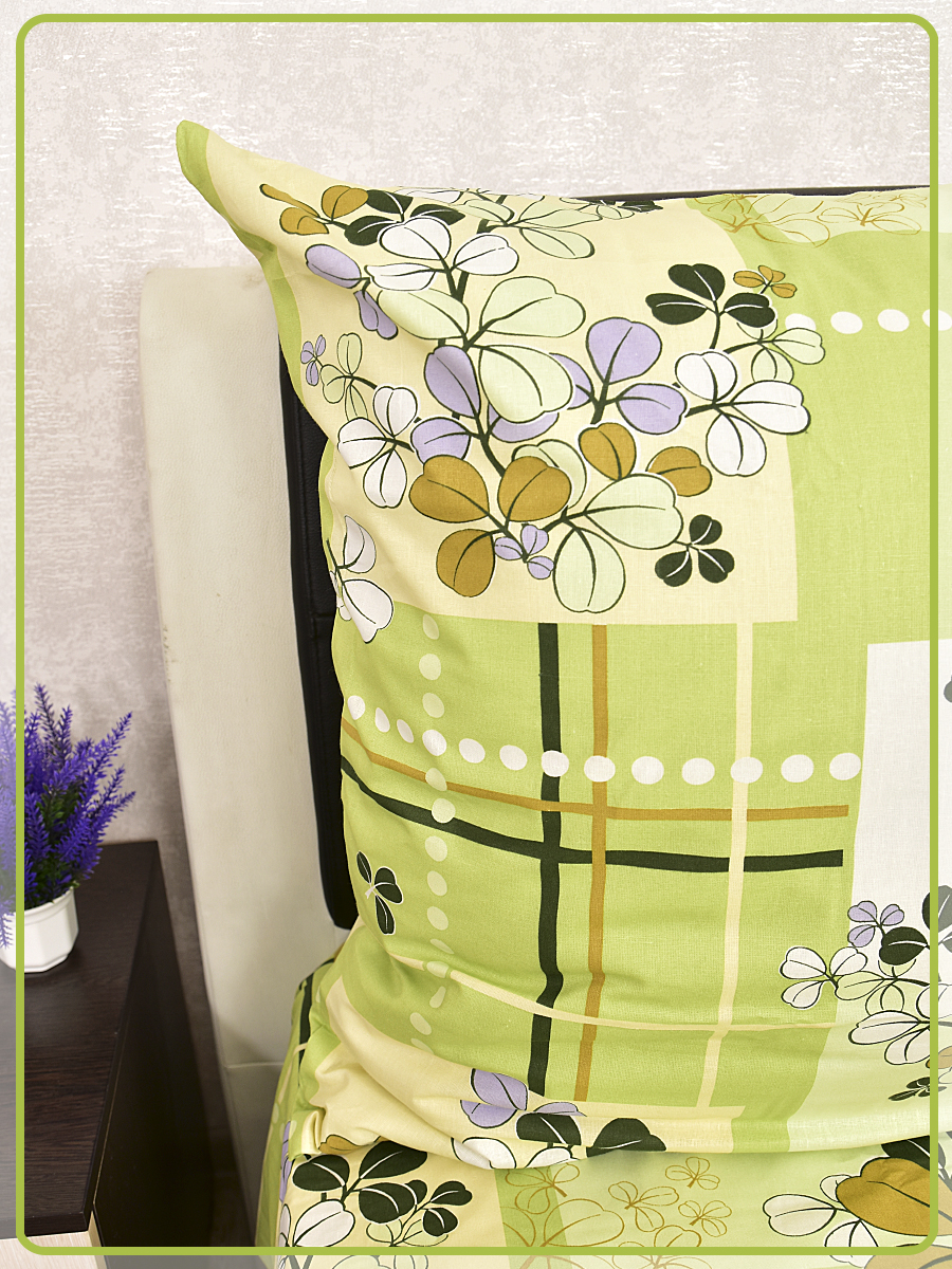 Постельное белье из Шуйской бязи 1,5 спальное - Листики зеленые 8947-1