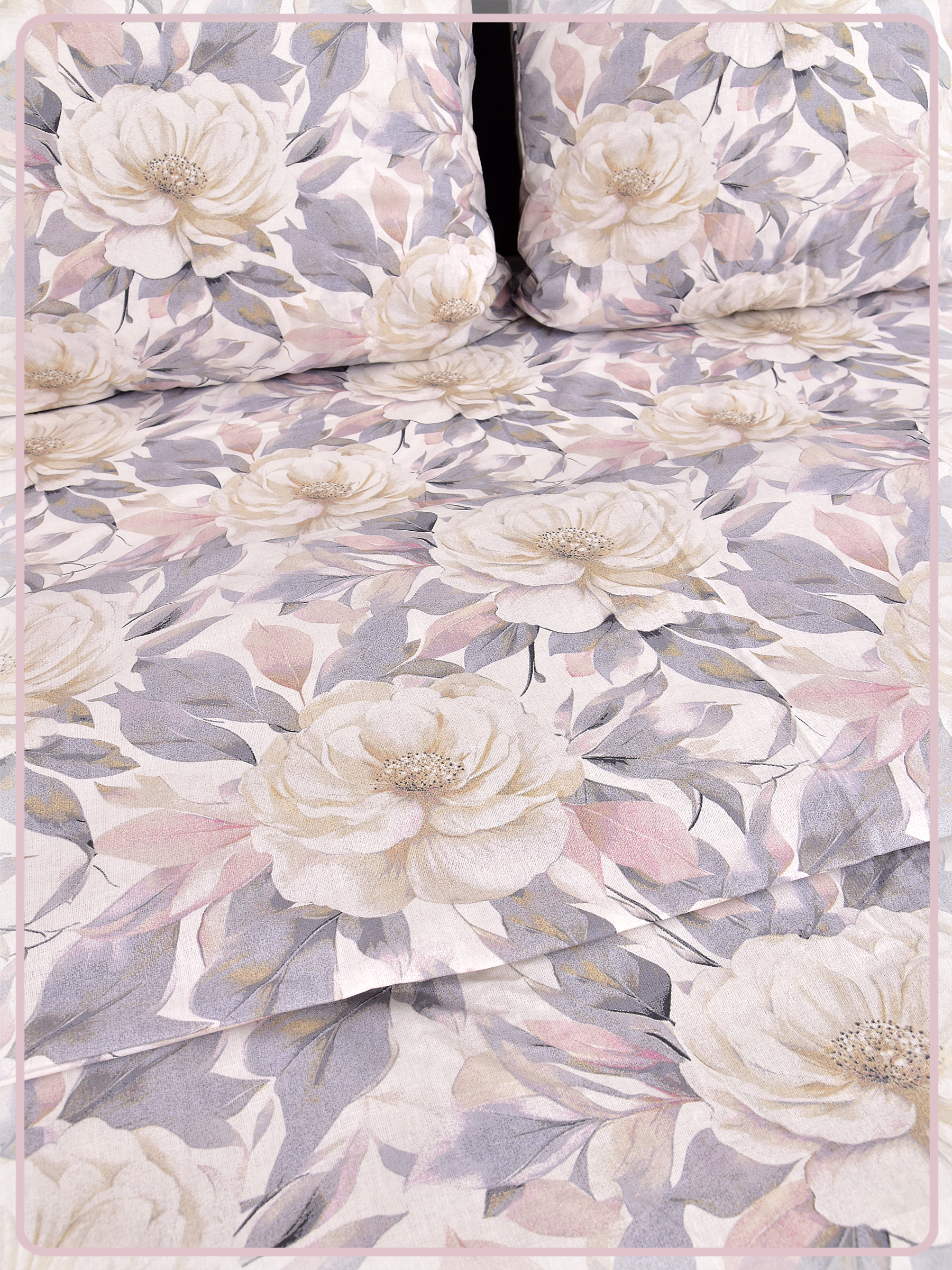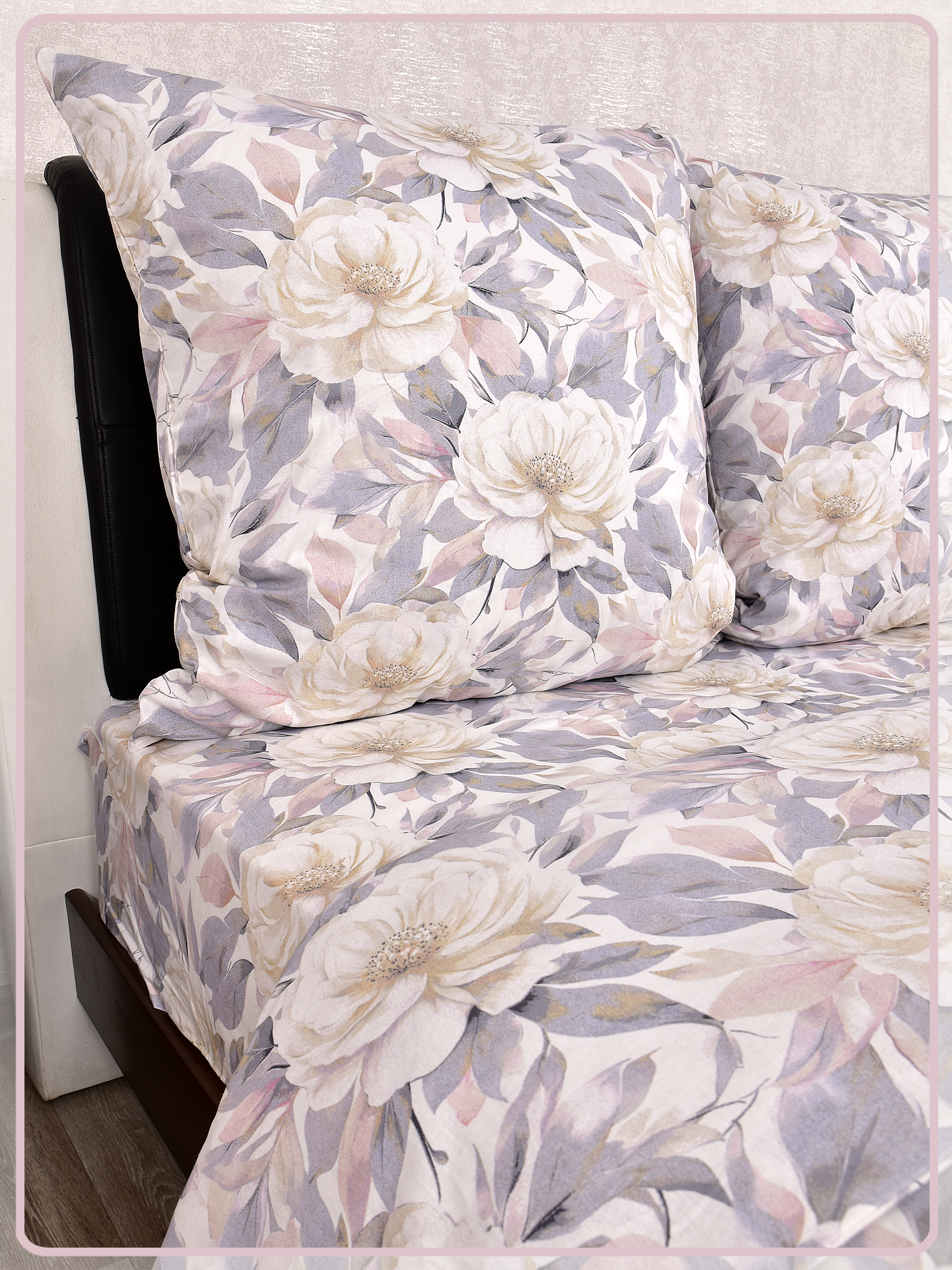 Постельное белье из Шуйской бязи 1,5 спальное - Пионы белые 21789-1
