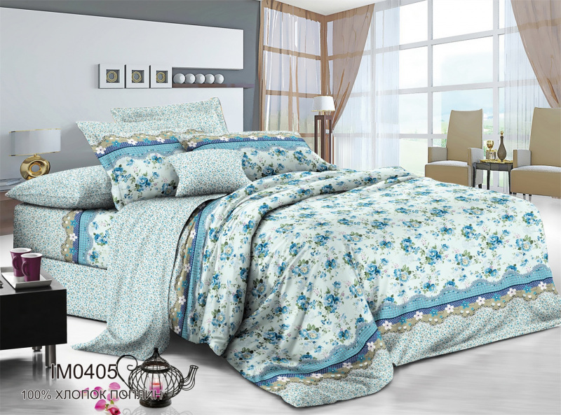 Комплект постельного белья плотностью 115 гр/м2 из поплина. Верх пододеяльника простеган ультростежкой. Пододеяльник и наволочки на молнии. Рюши и ушки (французский кант) отсутствуют.