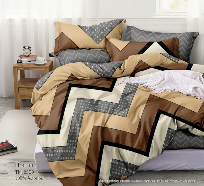 Комплект постельного белья плотностью 115 гр/м2 из поплина. Верх пододеяльника простеган ультростежкой. Пододеяльник и наволочки на молнии. Рюши и ушки (французский кант) отсутствуют.