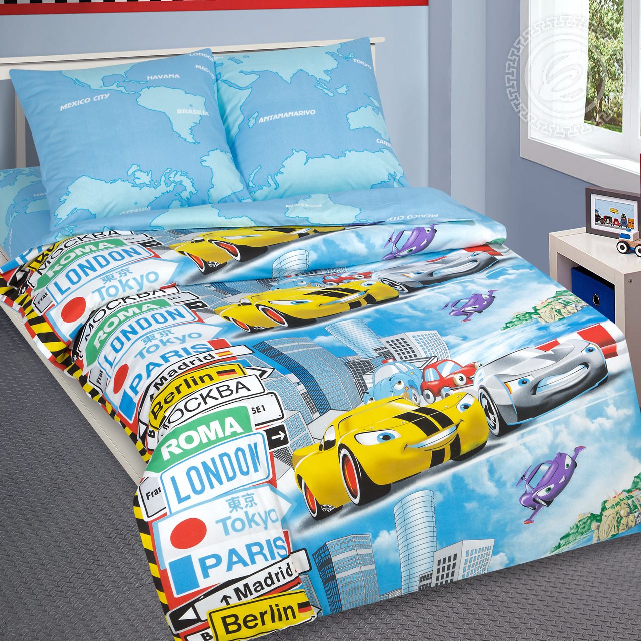 Детское постельное белье из поплина 1,5 спальное - Суперкар