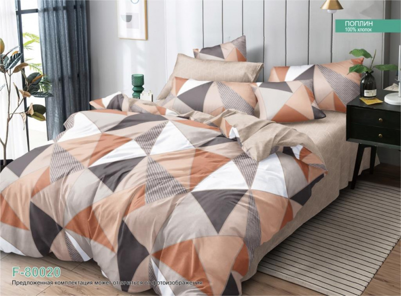 Постельное белье из Поплина с простыней на резинке 2 спальное европростыня - П-677