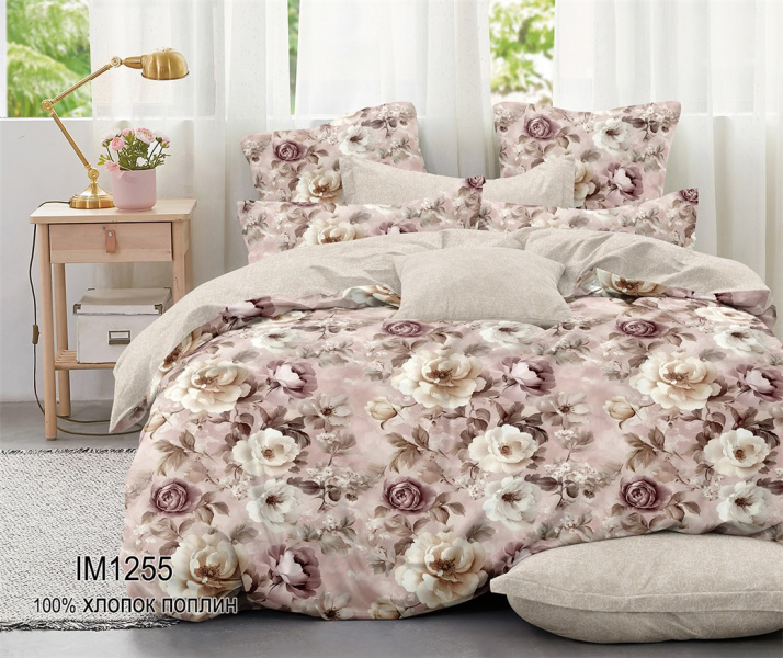 Комплект постельного белья плотностью 115 гр/м2 из поплина. Рюши и ушки (французский кант) отсутствуют.