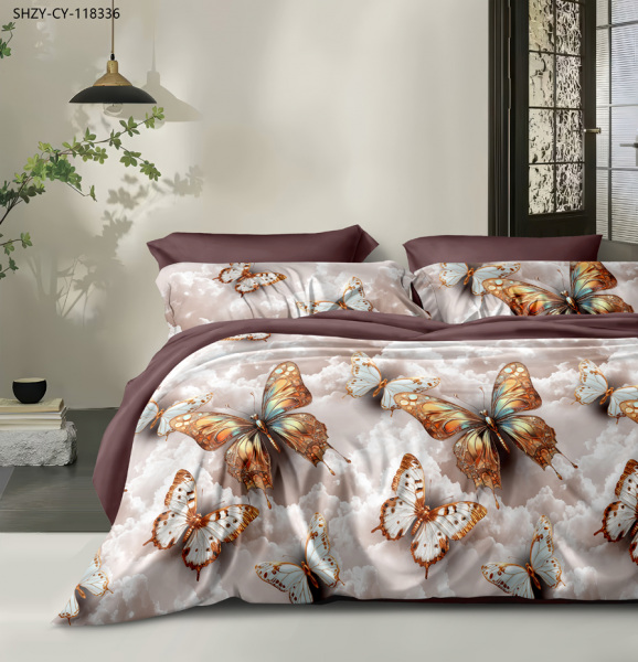 Комплект постельного белья плотностью 115 гр/м2 из поплина. Рюши и ушки (французский кант) отсутствуют.