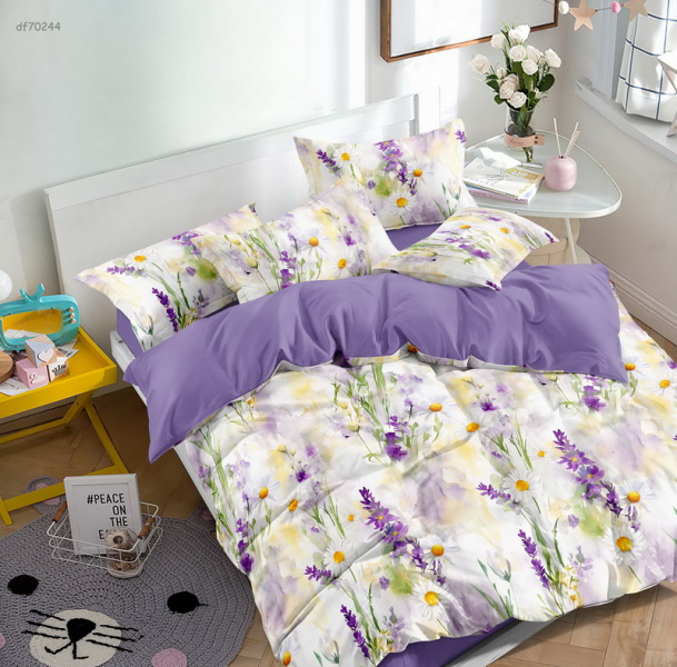 Комплект постельного белья плотностью 115 гр/м2 из поплина. Рюши и ушки (французский кант) отсутствуют.