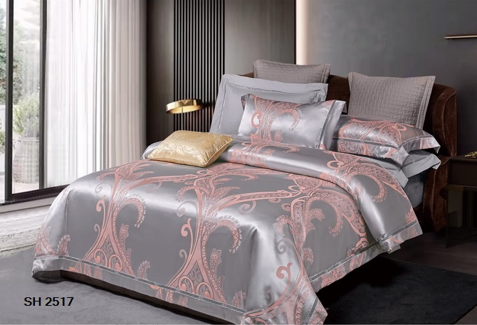Комплект постельного белья из сатина жаккарда. Пододеяльник и наволочки на молнии. Рюши и ушки (французский кант) отсутствуют.