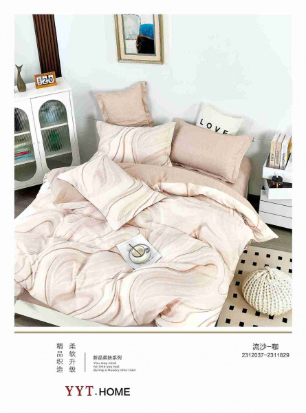 Постельное белье из твил сатина. Пододеяльник и наволочки на молнии. Рюши и ушки (французский кант) отсутствуют.