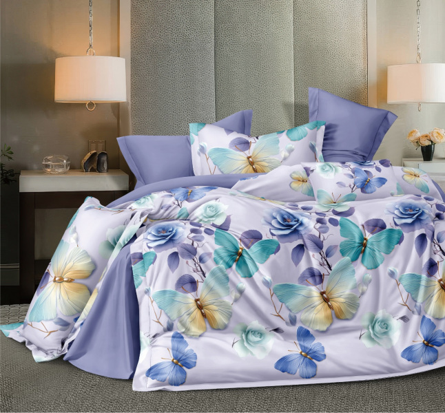 Постельное белье из твил сатина. Пододеяльник и наволочки на молнии. Рюши и ушки (французский кант) отсутствуют.