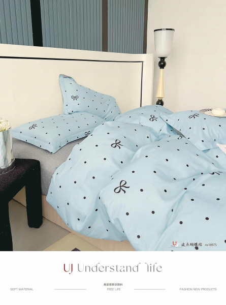 Постельное белье из твил сатина. Пододеяльник и наволочки на молнии. Рюши и ушки (французский кант) отсутствуют.
