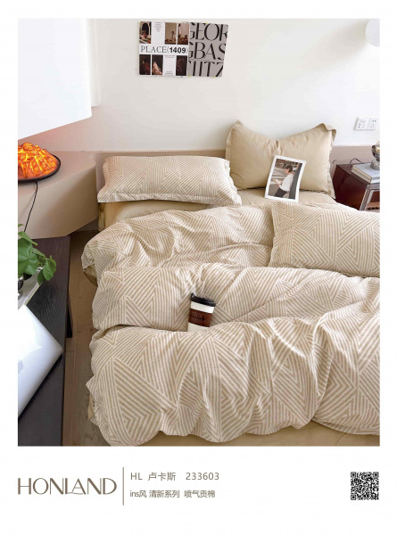 Постельное белье из твил сатина. Пододеяльник и наволочки на молнии. Рюши и ушки (французский кант) отсутствуют.