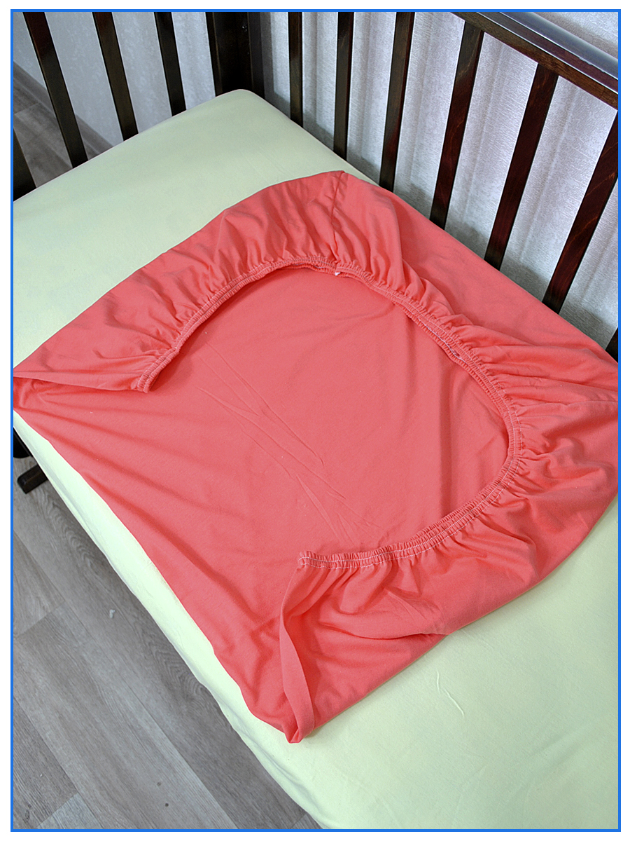 Простыня трикотажная на резинке 60х120 - (м) - коралловый