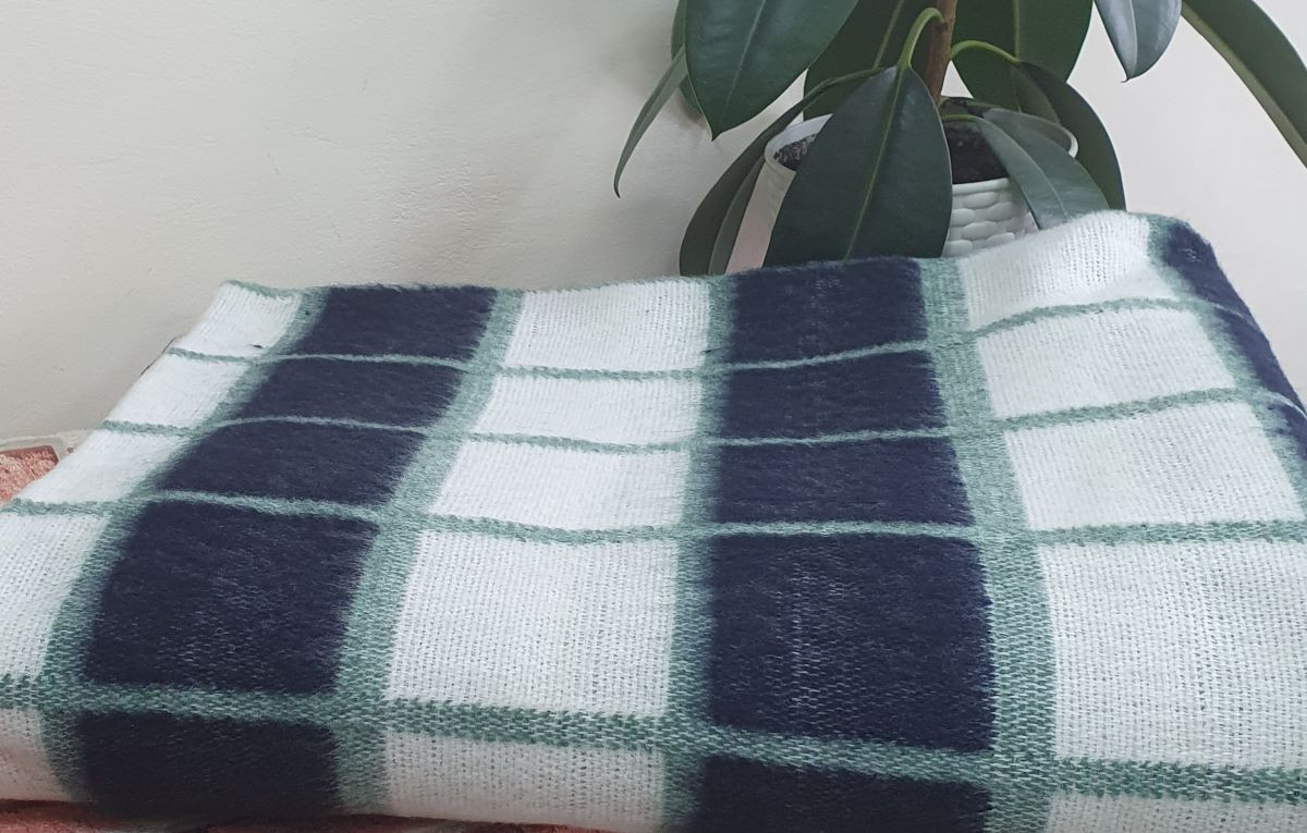 Одеяло шерстяное 50% 140*205 - Бело-сине-зеленая клетка 3 О-1