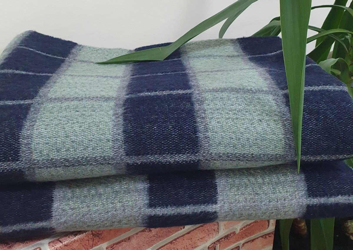 Одеяло шерстяное 50% 140*205 - Серо-сине-зеленая клетка О-1
