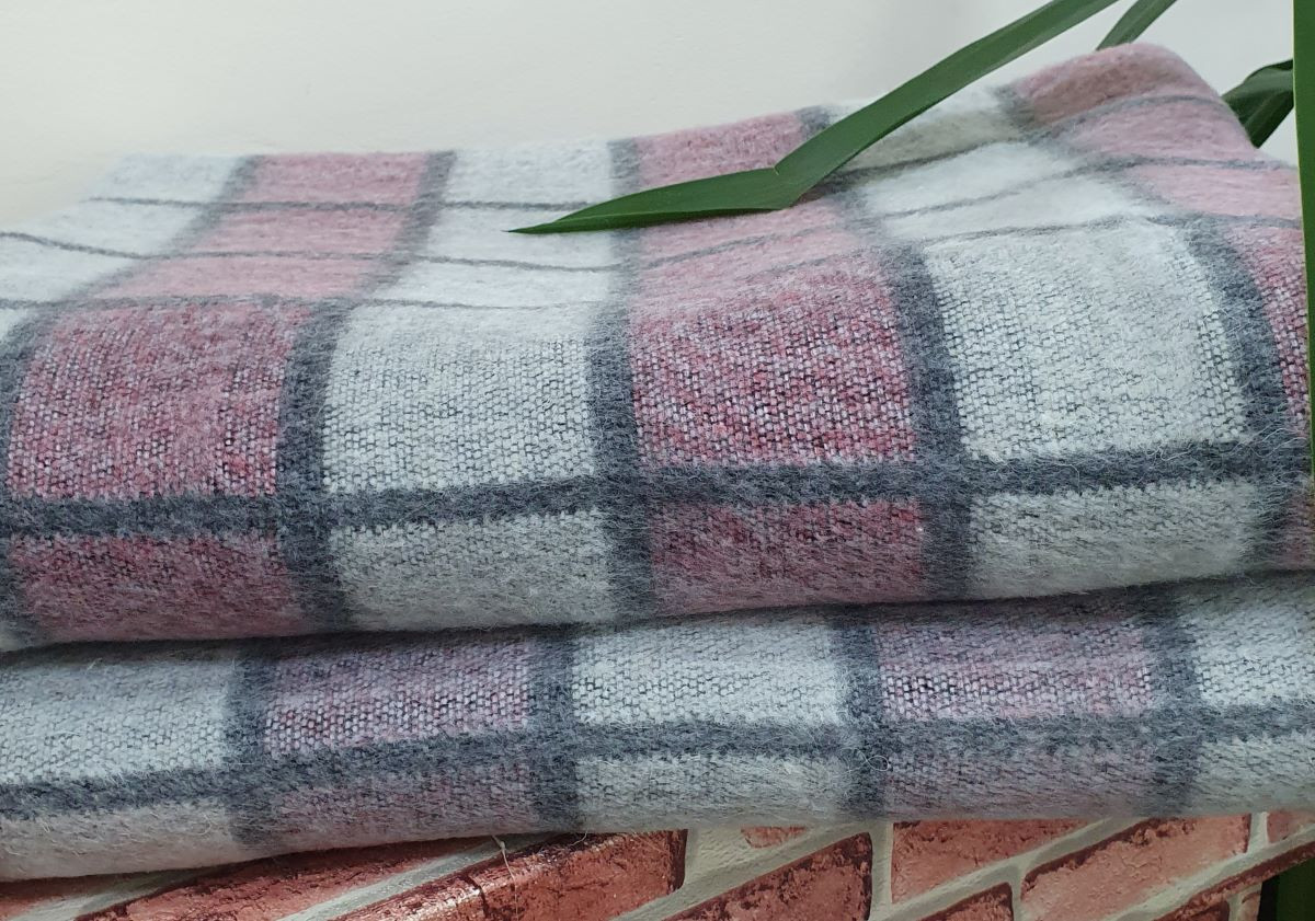 Одеяло шерстяное 50% 140*205 - Серо-бордовая клетка 2 О-1