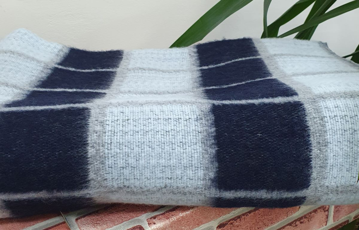 Одеяло шерстяное 50% 140*205 - Серо-сине-светло голубая клетка 1 О-1
