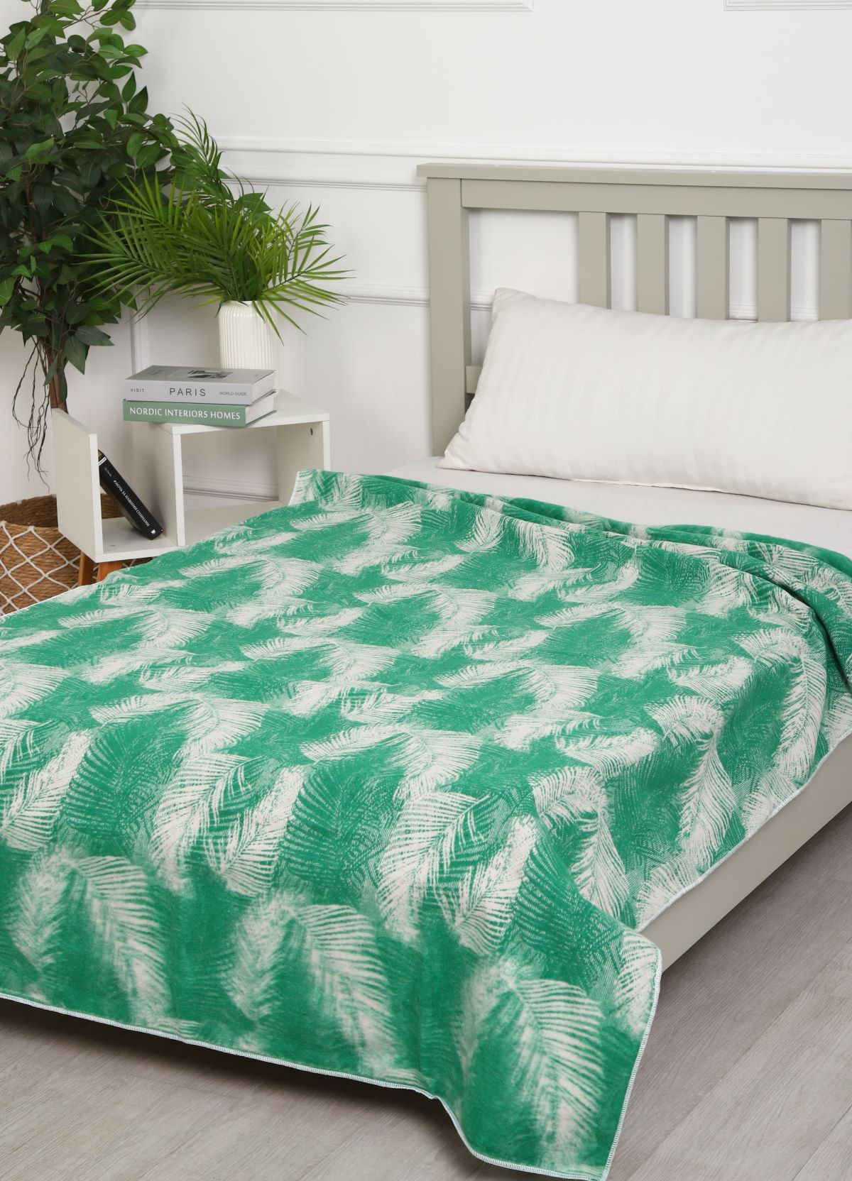 Одеяло байковое 140*205 - Зеленый Перья