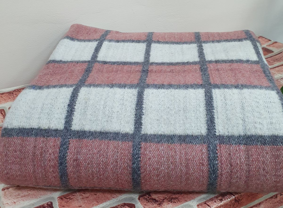 Одеяло шерстяное 50% 140*205 - Бело-серо-бургундия клетка О-2