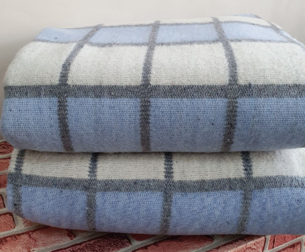 Одеяло шерстяное 50% 140*205 - Бело-серо-голубая клетка 1 О-1
