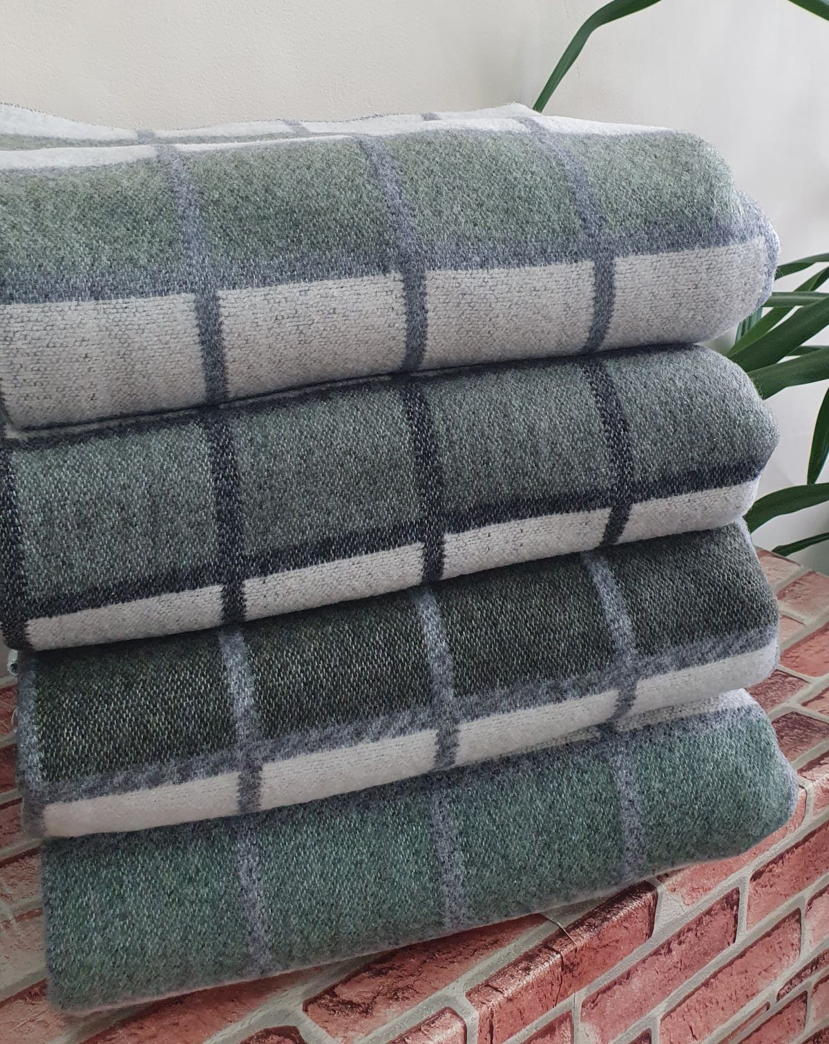 Одеяло шерстяное 50% 140*205 - Бело-серо-зеленая клетка микс О-2
