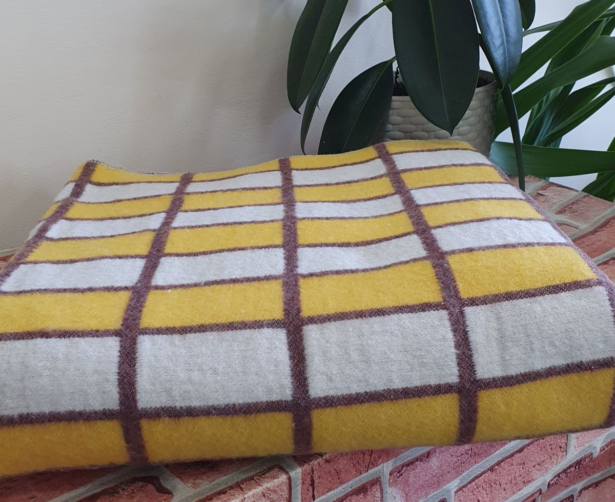 Одеяло байковое 140*205 - 80% хлопка бело-желто-коричневая клетка 1