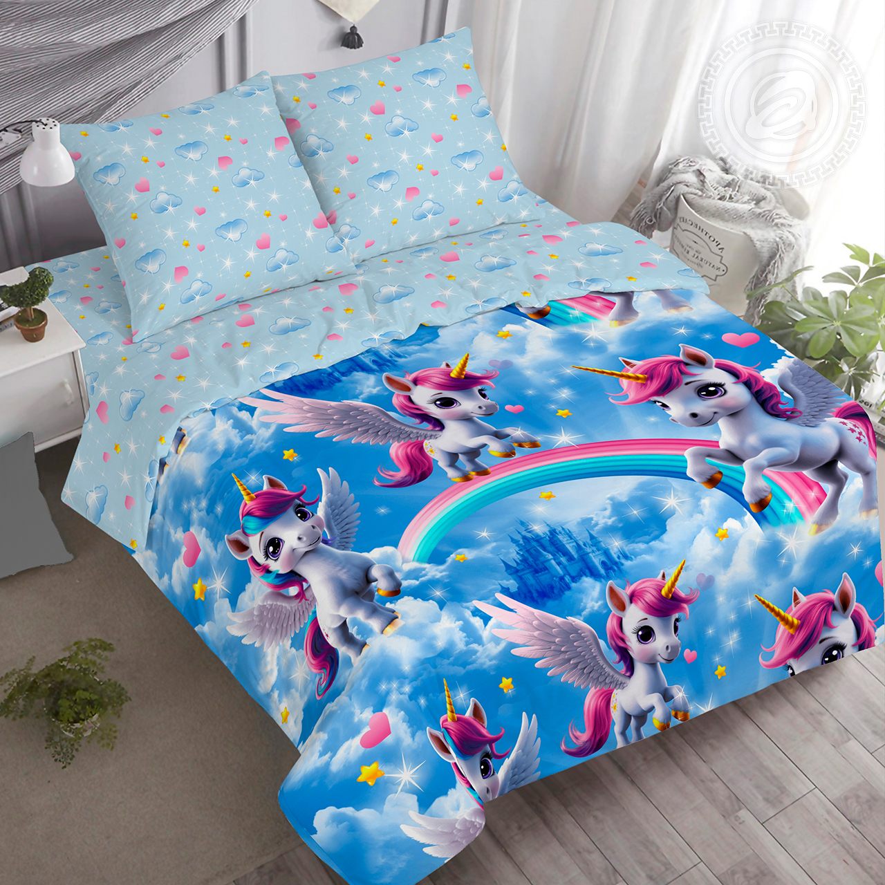 Ткань набивная Поплин 150 см. х 42 м. - Единорожки